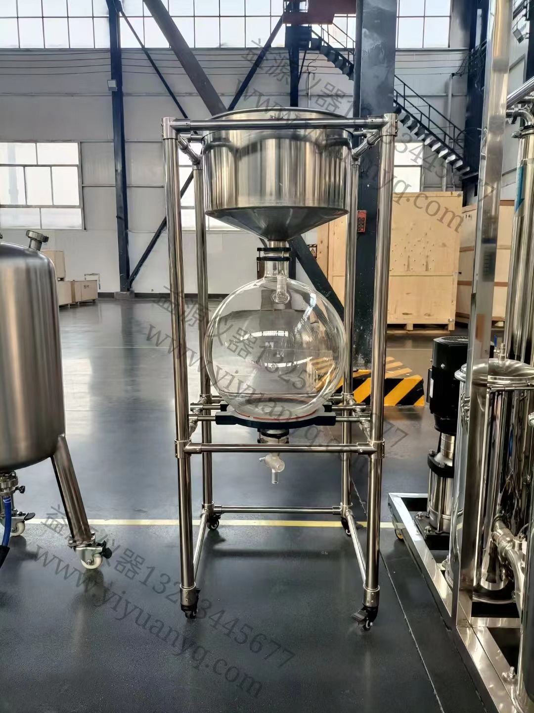 這款玻璃分液器采用不銹鋼進料斗 + 高硼硅玻璃接收球的經典結構,整體框架由 304 不銹鋼打造,搭配萬向腳輪,既保證了設備的堅固耐用,又實現(xiàn)了靈活移動,可輕松適配不同實驗場景的布局需求。其核心部件 —— 高硼硅玻璃接收球,具有極佳的化學穩(wěn)定性和透光性,能夠清晰觀察分層過程,同時耐受大多數(shù)酸堿溶劑的腐蝕,確保實驗數(shù)據(jù)的準確性和實驗過程的安全性。